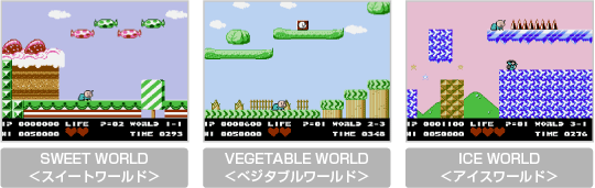 ウパの冒険は、さまざまなワールドを舞台に進みます。つるつる滑る氷のワールドや、機械でできた迷路のようなワールド、なかにはおいしそうなお菓子でできた、夢いっぱいのワールドも……! ただし、それぞれのワールドには、その場所ならではのやっかいなしかけもたくさんあります。くれぐれも気をつけましょう。 ![]() ![]() |