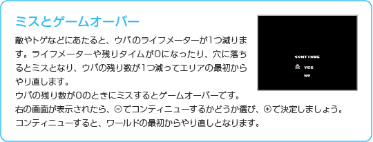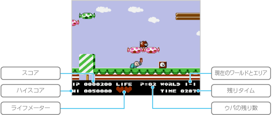 ウパを操作してエリアを進み、奥にある宝箱を開くとクリアとなります。エリアを3つクリアするとワールドクリアとなり、次のワールドに進むことができます。
