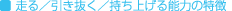 走る速さは4人とも同じですが、アイテムを持ちながら走る速さと、アイテムを引き抜く速さ、きのこブロックなどを持ち上げる速さは、右の順番となります。 |