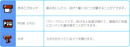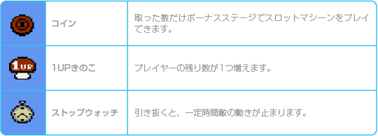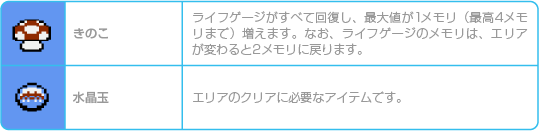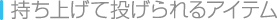 各エリアにはさまざまなアイテムがあり、触れるだけで効果があるものや引き抜くと効果があるもの、持って投げて使うものなど、種類によって使いかたが異なります。