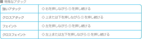 を押し続けているとジャンプします。相手のアタックに合わせてタイミングよくジャンプすると、アタックをブロックできます。