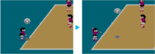 で動かします。基本的に、ボールがアタックラインより前にある場合は前衛を、アタックラインより後ろにある場合は後衛を操作します。