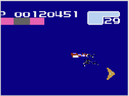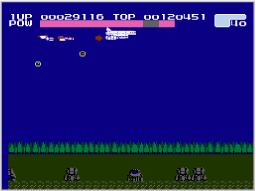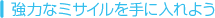 パワーゲージは敵を破壊すると増え、ミサイル攻撃を外すと減っていきます。敵がいないときはミサイルを撃たない、ダメージメーターに余裕があるときは体当たりで敵を倒す……など、工夫してパワーゲージを増やしましょう。 |