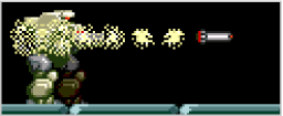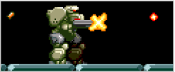 弾速は遅いですが、威力の高いミサイルを発射します。武器メーターはミサイルの残弾数を表し、メーターがなくなると撃てなくなります。ミサイルはそのステージをクリアしないと補充されません。 |