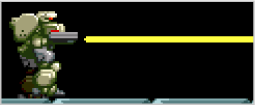 直進して対象を貫通するレーザーです。威力は低いですが、連続で照射することで大きなダメージを与えることができます。武器メーターはエネルギー量を表し、なくなると撃てなくなりますが、一定時間レーザーを使わなければ自動で回復します。 |
