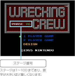 Wii本体の電源を入れたら、Wiiメニュー画面で『レッキングクルー』のチャンネルを選んでゲームを始めましょう。 |