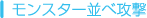 同じ色のモンスターを爆弾を含めずに3個以上ヨコに並べると、相手のステージ内の同じライン上にある爆弾がモンスターに変わります。 |
