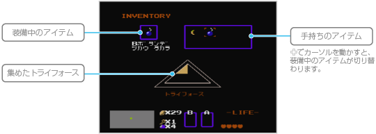 地上でサブ画面を表示すると、どのトライフォースを入手しているか確認できます。