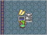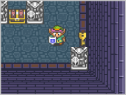 ダンジョン内にはカギのかかった部屋があり、扉を開けるには小さなカギが必要です。小さなカギは敵を倒したり、宝箱を開けると手に入ります。なお、小さなカギは一度使うとなくなってしまいます。 |