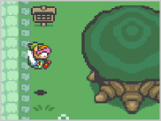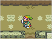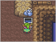 走りながら壁や木にぶつかると、体当たりができます。壁に穴を開けたり、木などに隠されたアイテムを入手できる場合もあります。 |