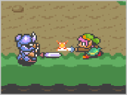 を押すと剣を振ります。連打すると、すばやく何回も振ることができます。