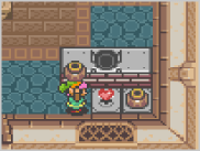 ハイラルには、さまざまな施設があり、冒険の手助けをしてくれます。重要な情報が手に入る占い屋、剣を鍛えてくれるかじ屋など、見かけたら入って話を聞いてみましょう。 |