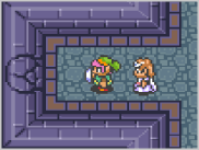 フィールドやダンジョンでヒビの入った壁を見つけたら、しっかり覚えておきましょう。ゲームを進めて爆弾を手に入れたら、壁を壊して宝箱を手に入れたり、ほかの部屋に行くことができます。 |