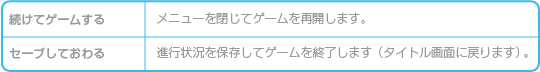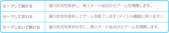 進行状況はゲームオーバー時に保存できます。 また、ゲーム中に |