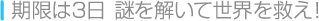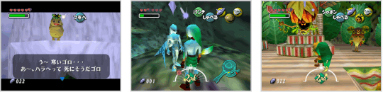 | リンクがタルミナを訪れたのは、年に一度のカーニバルの3日前。そして、月が落ち、世界が滅びてしまうとされる日の3日前です。つまり、リンクに与えられた時間は訪れた日から月が落ちてくるまでの3日間しかありません。この間に謎を解き、リンクは大事な友を探し出すことができるのでしょうか? そして、この世界を救うことができるでしょうか? | ![]() |