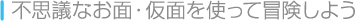 ゲームにはさまざまな種類のお面や仮面が登場します。なかにはお面(仮面)をかぶることでリンクの姿が変化し、できるアクションが変わるものもあります。状況に応じてお面(仮面)を使い分けながら冒険を進めていってください。 ![]() |