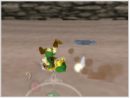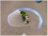 を押すと、回転しながら体当たりができます。回転アタック中は飛んできたものをはじくなど、盾をかまえたときと同じ効果を得ることができます。