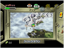 主人公がフィールドにいるときはタルミナの全体図が、ダンジョン内にいるときはダンジョンマップが表示されます。 |