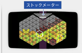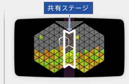 相手のステージに「おじゃまパネル」を発生させる 特定の条件で連続してパネルを消すと、相手のステージにHEXを作っても消すことができない「おじゃまパネル」ができます。「おじゃまパネル」は隣接するパネルでHEXを作らないと消すことができません。 相手のステージに「おじゃまパネル」を降らせる 「共有ステージ」でHEXを作ってパネルを消すと、それぞれのプレイヤーがHEXを作るたびにたまっていく「ストックメーター」にあるおじゃまパネルを、相手側に降らせることができます。 自由に進入できる「共有ステージ」 画面中央の2列は共有ステージとなっていて、両方のプレイヤーがパネルを操作することができます。共有ステージ内でパネルを消すと、自分のステージにあるおじゃまパネルをすべて消すことができます。