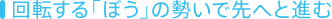 Aボタンを押している間、回転している「ぼう」の勢いと方向に応じて移動します。上を目指しながら、敵やブロックを「ぼう」で倒したり壊したりして、得点を稼ぐゲームです。回転する「ぼう」の中心にある「コア」に敵やブロックがぶつかるとゲームオーバーです。