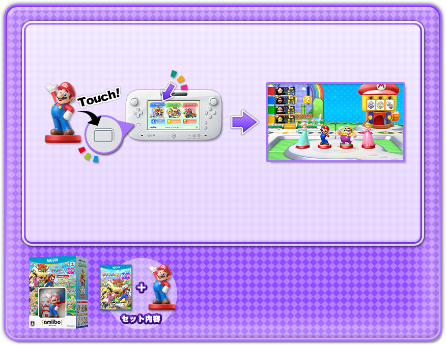amiiboをWii UのGamePadにタッチすると、amiiboパーティが遊べるようになります。