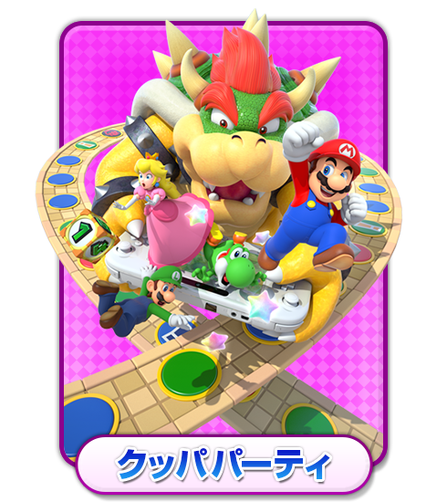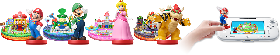 ※写真のamiibo以外でも、同じキャラクターのamiiboであれば使用可能です。※クッパamiiboを使うと、ゲーム中に発生するミニゲームはクッパミニゲームになります。クッパで遊べるのは1人までです。※上記のキャラクター以外のamiiboでは、amiiboパーティは遊べませんが「amiiboタッチボーナス」がもらえます。