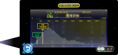 ※世界ランキングは「ミッション」のスタート画面や結果画面、「ストーリー」の結果画面などから見ることができます。※世界中から集まった記録は、定期的に集計して、いつの間に通信で配信します。