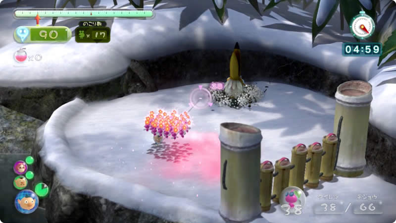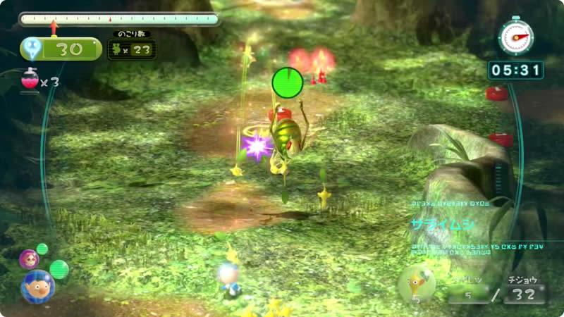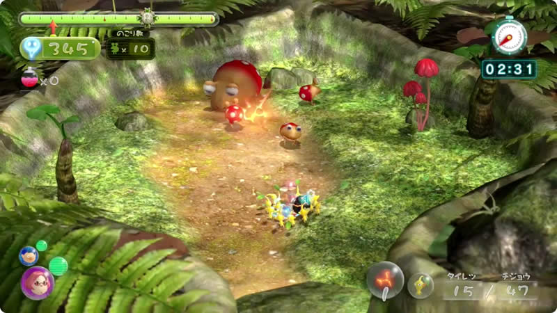 原生生物をたおせ! テクニックや作戦、いろんなピクミンを駆使しながら、制限時間内に1匹でも多くの原生生物を倒すことを目指すミッションです。