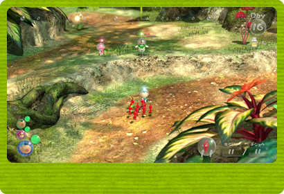 3人を上手に切り替えて、惑星を大冒険! アルフとチャーリーとブリトニー。3人は一緒に行動することも、別々の場所に分かれてピクミンたちに指示を出し、仕事を手分けして効率アップさせることもできます。惑星探索のカギは3人の切り替え。1人や2人では行けない場所でも、3人の力を合わせることで進めるようになるかも?