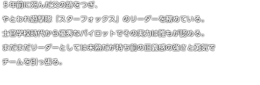 5年前に死んだ父の跡をつぎ、やとわれ遊撃隊「スターフォックス」のリーダーを務めている。士官学校時代から優秀なパイロットでその実力は誰もが認める。まだまだリーダーとしては未熟だが持ち前の正義感の強さと勇気でチームを引っ張る。