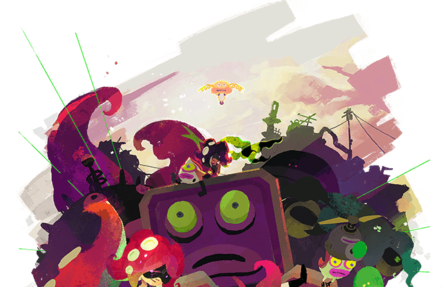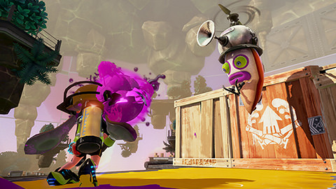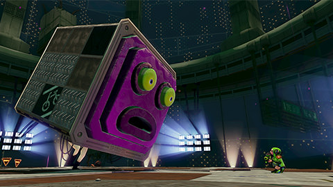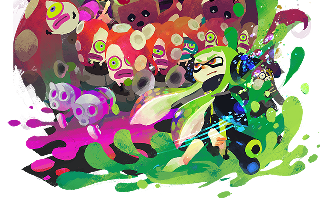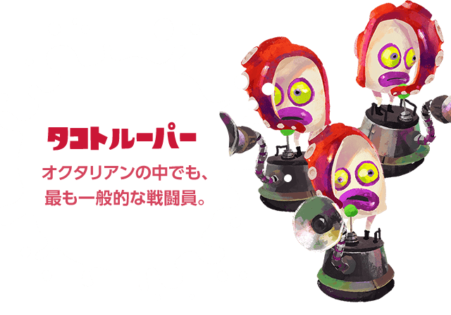 ヒーローモードは、ナワバリバトルとはまったく違う、ひとり用のモード。 迫りくる敵「オクタリアン」を倒す本格的なシューティングアクションだ!