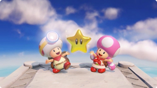 お宝を求めて探検中のキノピオ隊長とキノピコ。やっと「パワースター」をみつけたと思ったら、大きな鳥の「ウィンゴ」にキノピコごとさらわれてしまいました!キノピコを助けるために旅立つことになったキノピオ隊長。でもホントにひとりで大丈夫?勇気いっぱい、ときにはビクビク。進め!キノピオ隊長!