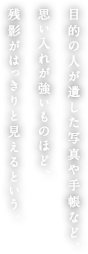目的の人が遺した写真や手帳など。思い入れが強いものほど、残影がはっきりと見えるという。