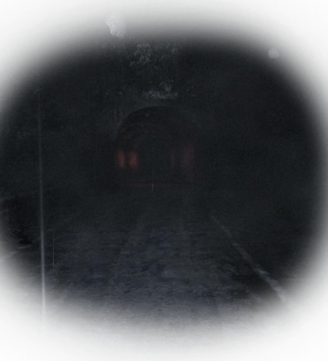 参拝マップその10 日上トンネル 日上山を観光地として開発する際、山頂の大禍境へと通ずる観光道路を通す予定で作られていたトンネル。工事中、山の内部に広がる「胎内洞窟」に繋がったため、洞窟内部に流れる大量の水がトンネル内へ流れ込み、多数の死者が出た。その後工事は再開されたが、事故や行方不明者が相次いだため、現在は道路自体も封鎖されている。
