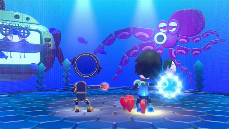 オクトパスダンス リズムに合わせてワン・ツー・スリー リズムに合わせてMiiにダンスをさせるアトラクションです。インストラクターのポーズのあとに、Wii U GamePadをかたむけたりスティックを動かしたりしながら、Miiに同じポーズをさせます。Wii U GamePadとテレビでは、表示されるキャラクターの向きが異なります。