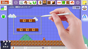 をタッチすると、お試しプレイでマリオの通ったあとを確認できます。マリオの動きを参考に、パーツを置く位置などを調整できます。