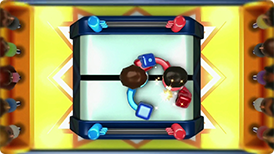 頭→体→?の順でパネルをならべてMiiを完成させます。「チャンスタイム」で勝つとパネルを奪えます。