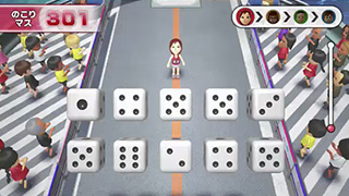 【いろいろなサイコロを振る】Wii U GamePadを持って動かしたり、タッチスクリーンをスライドしたりと、バリエーション豊かなサイコロが登場。→【進む】サイコロの目だけマスを進み、ゴールをめざします。