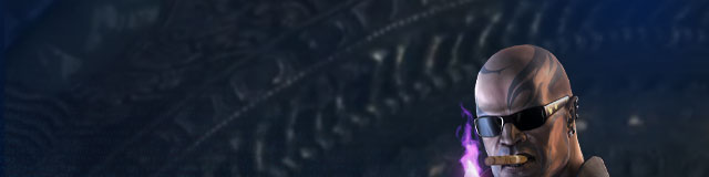暗黒街で、ゴロツキども御用達のバー「The Gates of Hell」を営むバーテンダー。厳つい姿とは裏腹に物腰は穏やかだが、サングラスの奥で冷たく光る眼差しは、ひと睨みで荒くれどもを黙らせる凄みがある。 気に入った者には裏で様々な武器を融通するほか、この世のものとは思えない威力の器具を自ら造り上げるとも言われ、“魔界のガンスミス”と渾名されるが、その素性を知る者はいない。