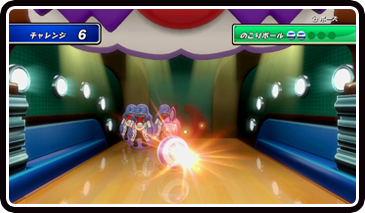 • ナイスプレイのヒ・ケ・ツ 投球の方向が狙いどおりにいかなくても、ボールの軌道は途中で変えることができます。最後まであきらめずに、ピンをねらってGamePadを左右に傾けてみてください。