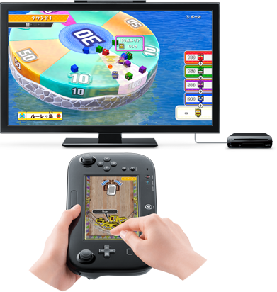 • Wii U GamePadをどう使う? GamePadをタテに持ちます。しゃぎぃを後方にスライドして指を離すと、照準を合わせた場所まで飛んでいきます。