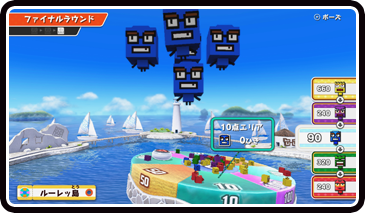 アイランド 2〜5人用 しゃぎぃを飛ばして、はじいて、生き残れ! テレビ画面に映っている、点数の割り振られた島にしゃぎぃを飛ばし、みんなで得点を競います。相手のしゃぎぃをはじいて点数を減らしたり、しかけを作動させて点数のアップをねらったりできます。