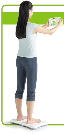 からだ測定はテレビ画面がなくても大丈夫。Wii U GamePadの画面を見て測定を行うことができます。さらに、『Wii Fit U デイリーチェック』をダウンロードすることで、『Wii Fit U』のディスクがWii Uに入っていなくてもからだ測定ができるようになります。