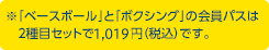 「ベースボール」と「ボクシング」の会員パス2種目セットの価格を「1,100円(税込)」と記載しておりましたが、正しくは「1,019円(税込)」です。お詫びして訂正いたします。(2021.4.8)