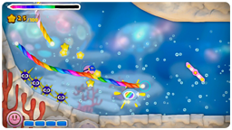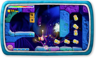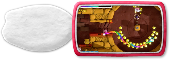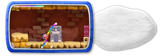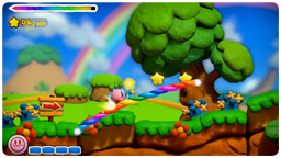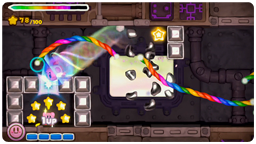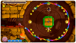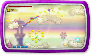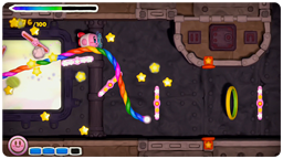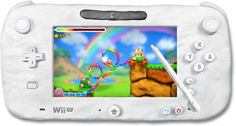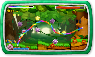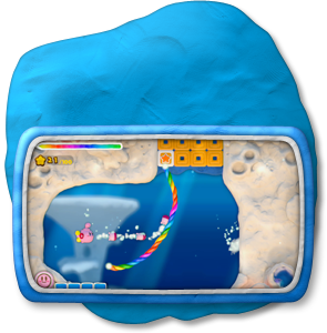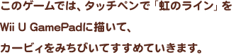 このゲームでは、タッチペンで「虹のライン」をWii U GamePadに描いて、カービィをみちびいてすすめていきます。