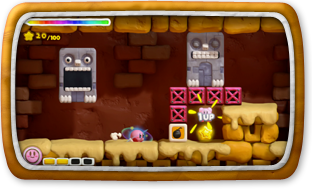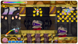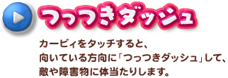• つっつきダッシュ カービィをタッチすると、向いている方向に「つっつきダッシュ」して、敵や障害物に体当たりします。