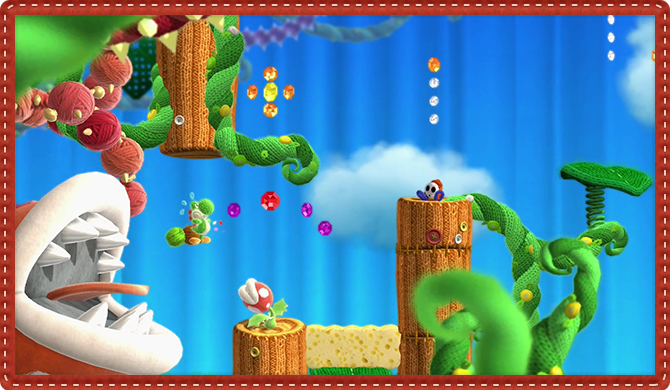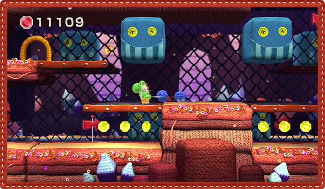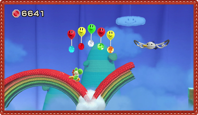 • コースにある毛糸をすべてあつめていくと、どんどんヨッシーが復活!コースにある毛糸をすべてあつめていくと、どんどんヨッシーが復活!