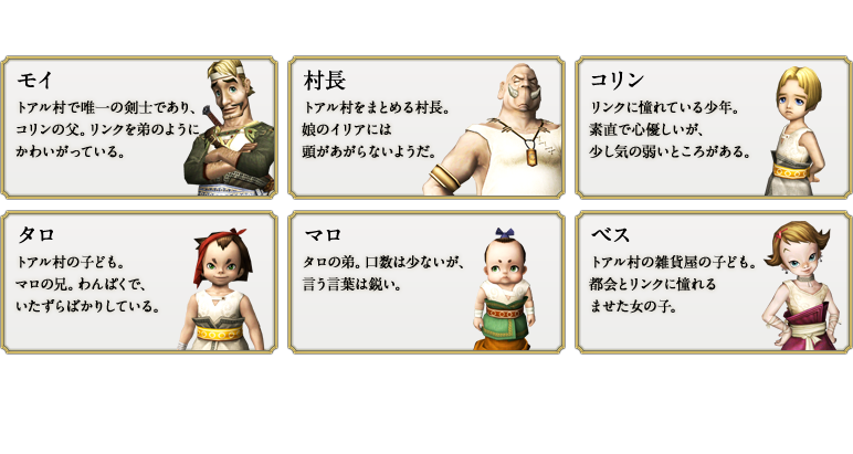 モイ:トアル村で唯一の剣士であり、コリンの父。リンクを弟のようにかわいがっている。