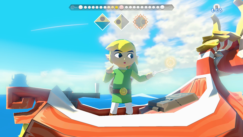 神の力が借りられる指揮棒。タクトの振りかたに応じてさまざまな力を発揮することができます。海の上ではタクトを使って風向きをコントロールし、船の進む方向を決定します。