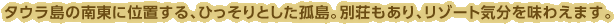 タウラ島の南東に位置する、ひっそりとした孤島。別荘もあり、リゾート気分を味わえます。